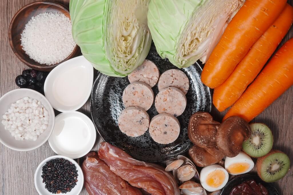 鉄分が豊富な豚レバー、季節野菜の春キャベツ、
